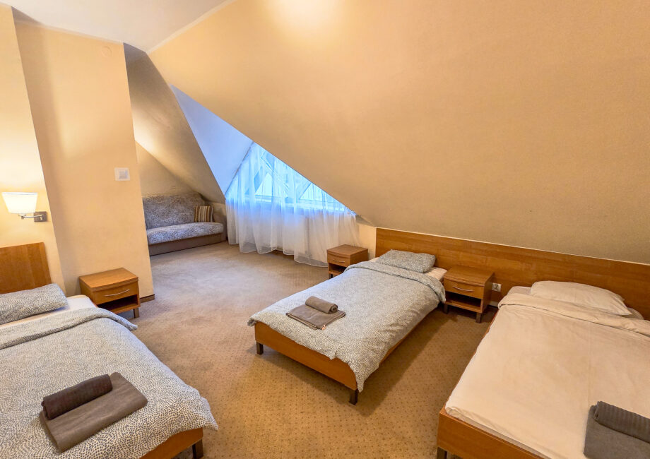- Typ łóżka: 3 osobne łóżka i kanapa lub 4 osobne łóżka