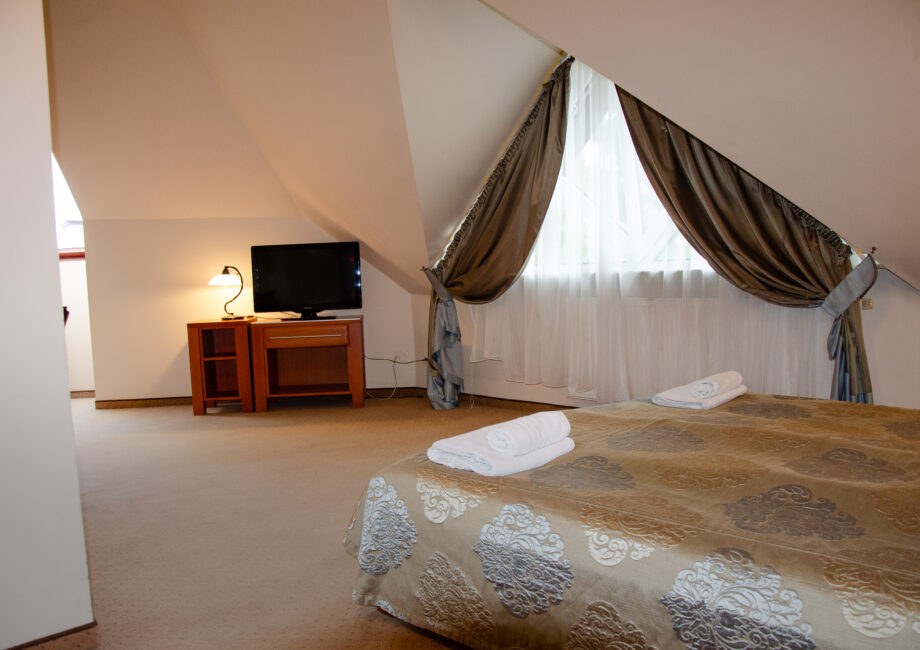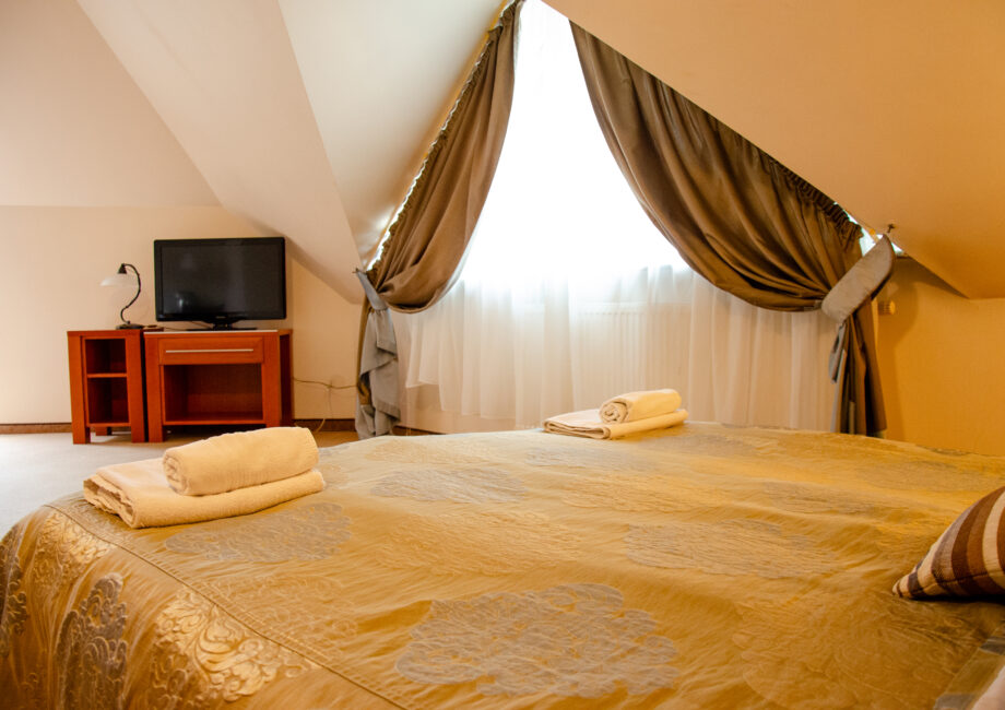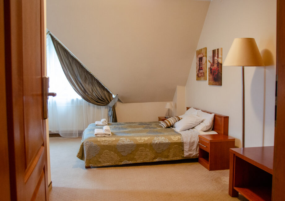 Oferuje 27 komfortowych pokoi i apartamentów, w tym wyjątkowy apartament z wanną z hydromasażem oraz drugi z tarasem, z którego rozciąga się przepiękny widok na jezioro.
