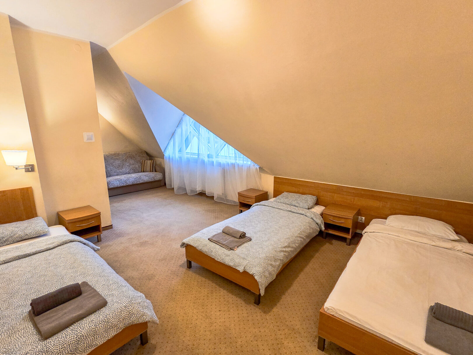 okoje czteroosobowe. Dostępne są pokoje z trzema osobnymi łóżkami i kanapa lub czteroma osobnymi łóżkami.